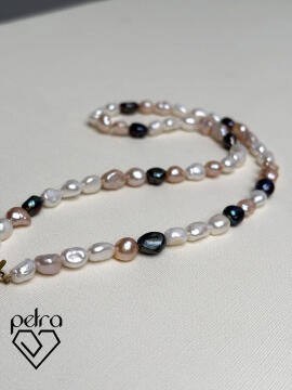 گردنبند مروارید باروک,تشکیل شده ازرنگ های مختلف که همشون رنگ های طبیعی خود مروارید هستند.این مدل گردنبند به صورت دوطرفه استفاده میشود.