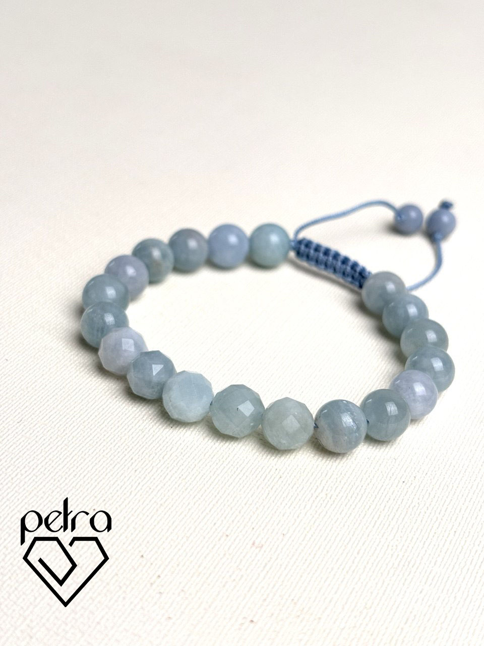 این مدل دستبند از رنگ آبی آرامشبخش اقیانوس هست ونماد آرامش و شفافیت ذهن وانرژی مثبتو همچنین باعث کاهش استرس و کمک به بیان و رفع لکنت زبان میشود.